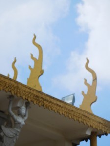 All I can say about the Palace is – wow! There are a number of buildings with the beautiful Cambodian rooftops dragon emblems. Royal clothing is on display, The Silver Pagoda is aptly named – the entire floor is solid silver tiles. The images of Buddha are gold with diamonds, or jade, or just gold. We wandered through the complex (melting in the heat) but enjoyed exploring the temples and other buildings.